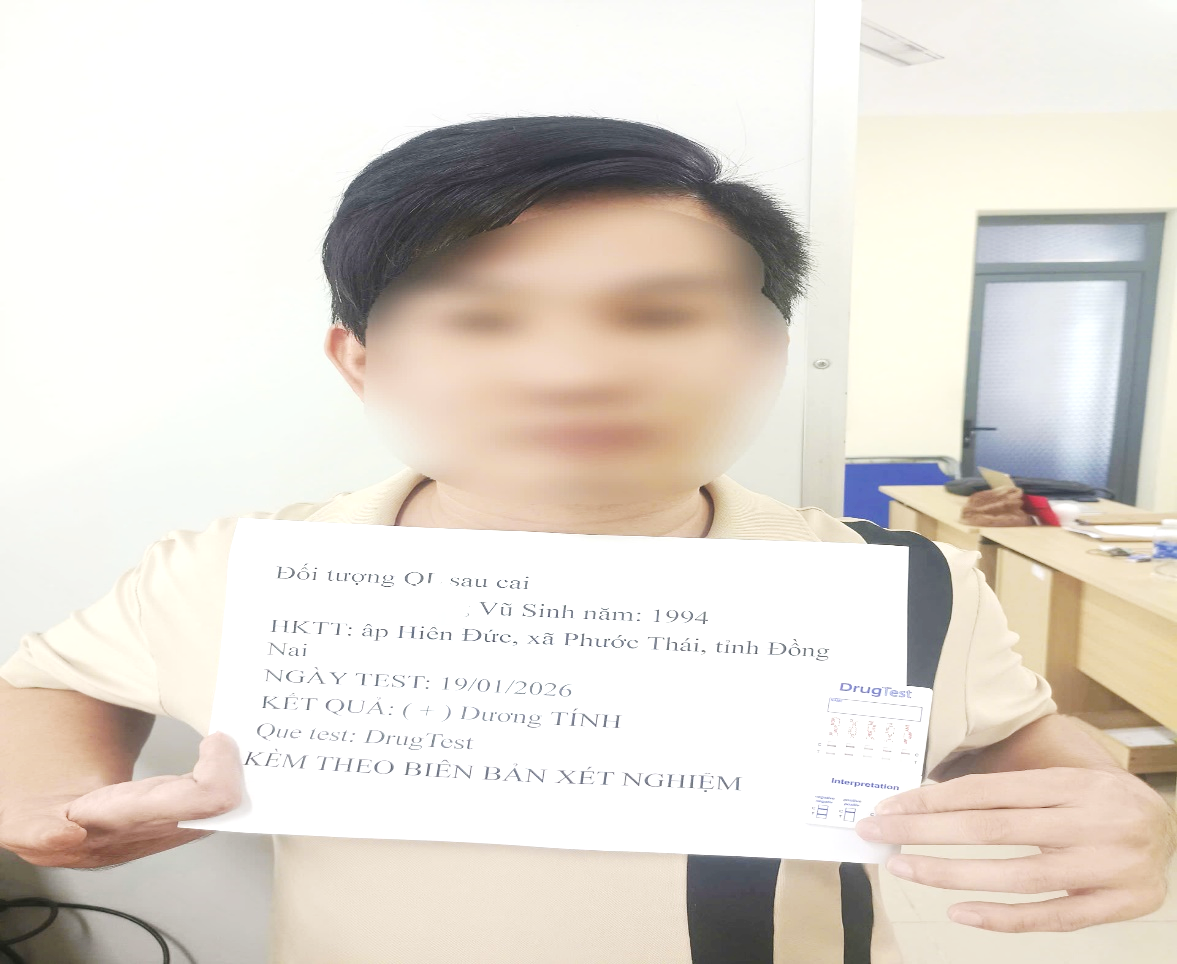Qua công tác quản lý địa bàn, nắm người, nắm hộ, nắm đối tượng, Công an xã Phước Thái tiến hành kiểm tra nhanh chất ma túy đối với đối tượng Trần Duy Quang Vũ, sinh năm: 1994, HKTT: ấp Hiền Đức, xã Phước Thái, tỉnh Đồng Nai là đối tượng quản lý sau cai nghiện, kết quả Vũ dương tính với ma túy tổng hợp (Methamphetamine).